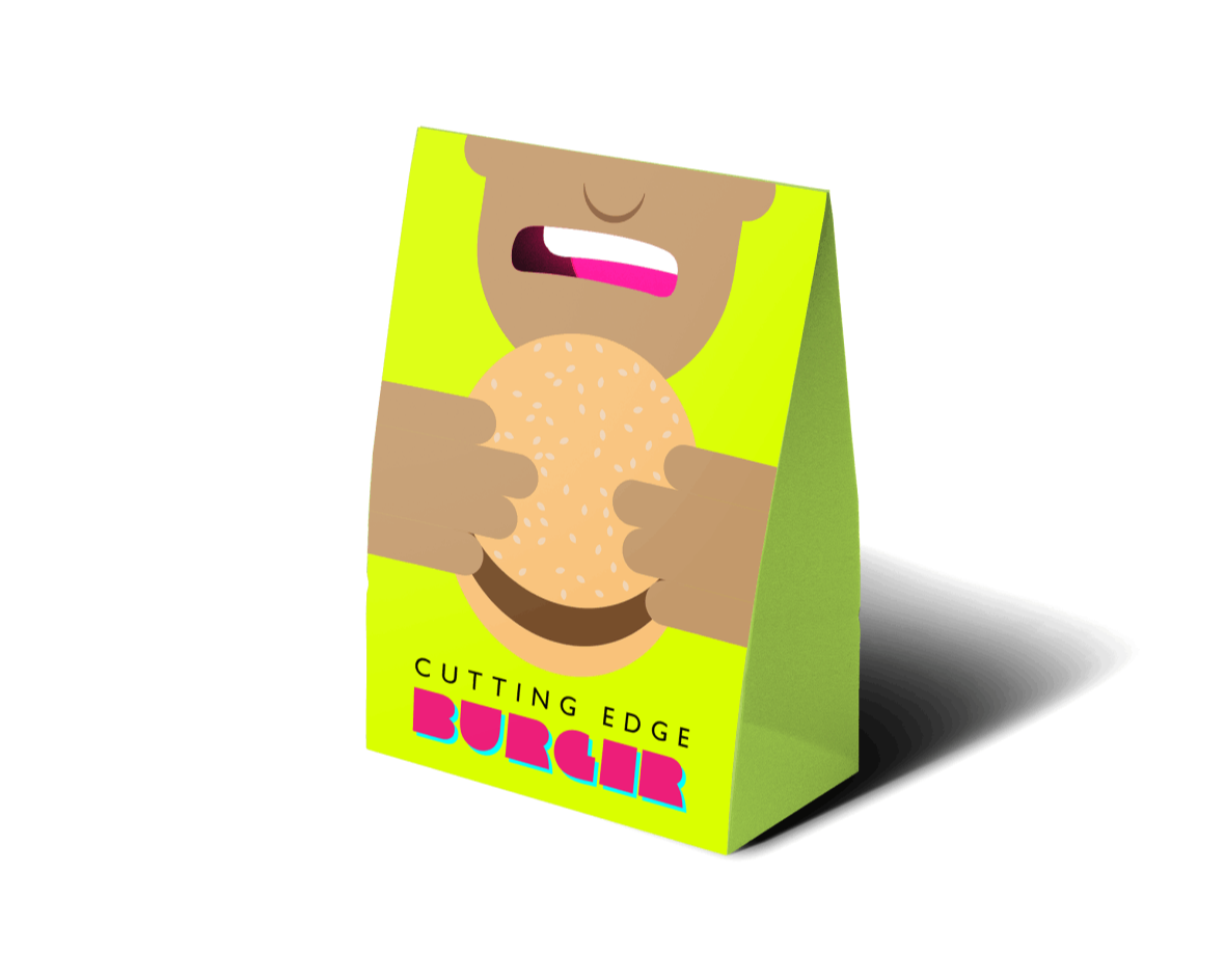 When Cutting Edge Caterers started a popup burger restaurant, they requested that the ordering process be equally customizable and simple. Each burger was handcrafted with specificity down to the stacking order of the ingredients; and no burger was too big or complex either. In the spirit of that simplicity, this design was developed, and made the ordering process fun and efficient. Since the branding was exclusive to the popup, we accompanied it with a tasty bag design.
